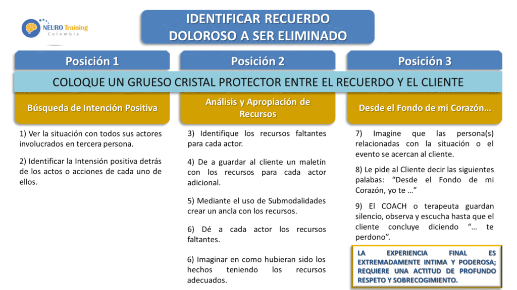 con esta Técnica buscamos lograr un estado de recursos con base el perdón. Esto quiere decir que buscamos averiguar la función positiva de una conducta conflictiva que requiere perdón y obtener los recursos faltantes para generar un estado de recursos originado en el perdón.