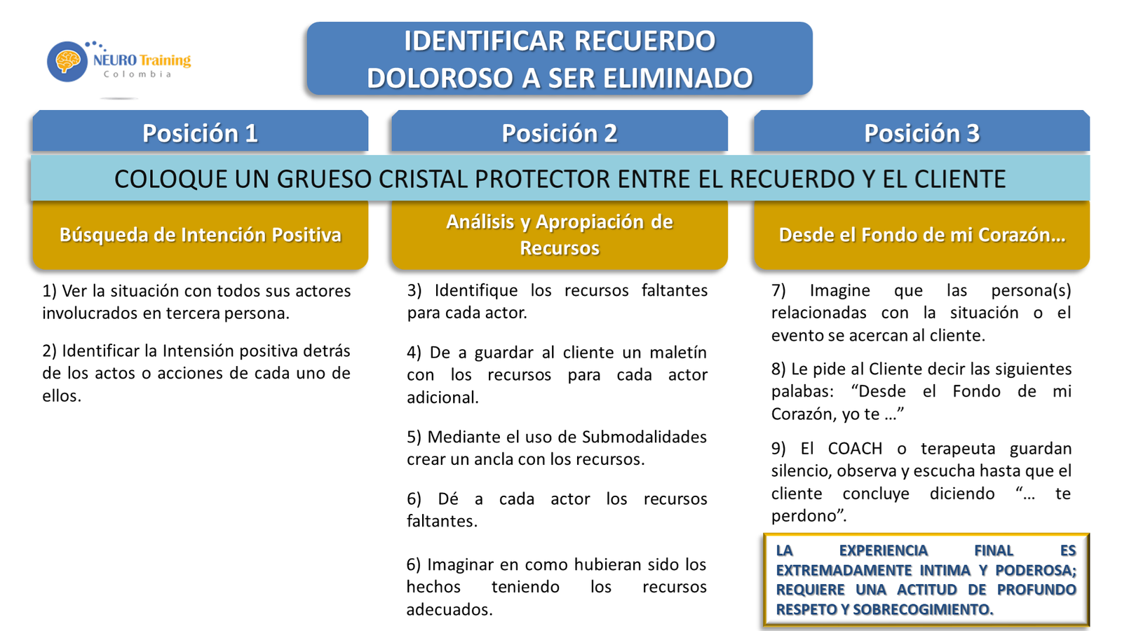 con esta Técnica buscamos lograr un estado de recursos con base el perdón. Esto quiere decir que buscamos averiguar la función positiva de una conducta conflictiva que requiere perdón y obtener los recursos faltantes para generar un estado de recursos originado en el perdón.